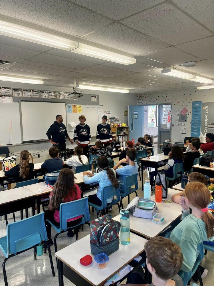 Nous avons eu la visite de deux joueurs ainsi que de l'entraineur chef M. Olivier Fillion. Les invités ont visité les classe de la 4e à la 7e année ou les élèves avaient la chance de poser quelques question. Ils ont beaucoup parlé de la résilience et le leadership dans le sport.